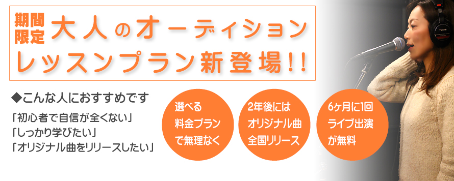 | 大人のオーディション「レッスンプラン」 全国CD、i-tunes他20サイトより配信デビュー!! |
